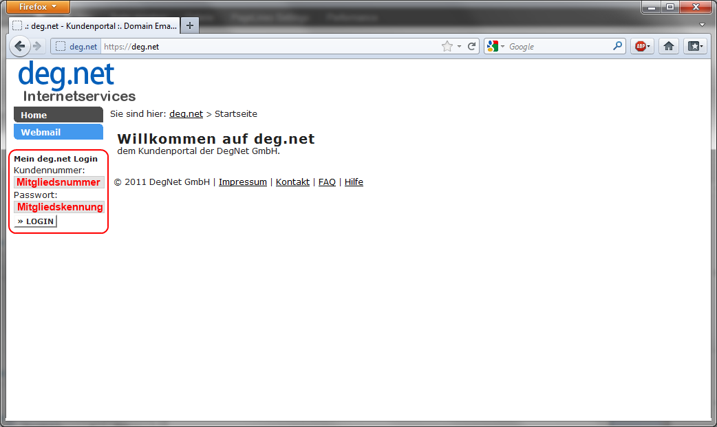Verwenden Sie Ihre DegNet e.V. Mitgliedsnummer und Ihre Mitgliedskennung um sich ins Deg.Net Portal einzubuchen. Danach können Sie unter dem Menüpunkt E-Mail die gewünschten E-Mail Konten anlegen, ändern und löschen, sowie E-Mail Weiterleitungen konfigurieren…