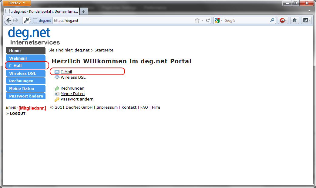 DegNet - Portal - Übersicht Logged-InDegNet - Portal - E-Mail Menü
