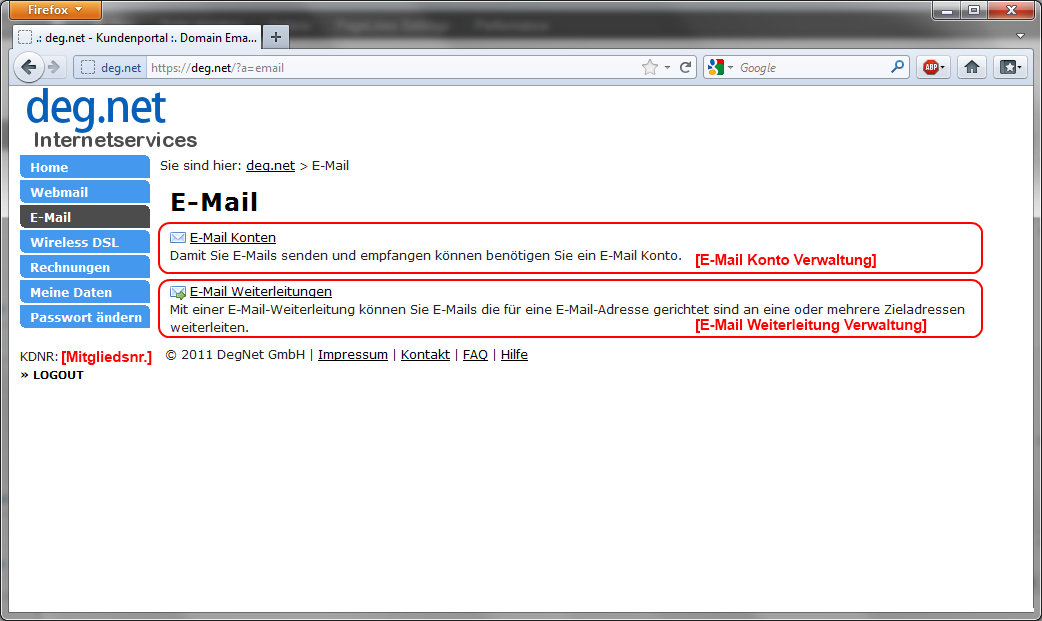 So einfach verwalten Sie als Mitglied des DegNet e.V. Ihre E-Mail Konten und Weiterleitungen via https://Deg.Net Portal: